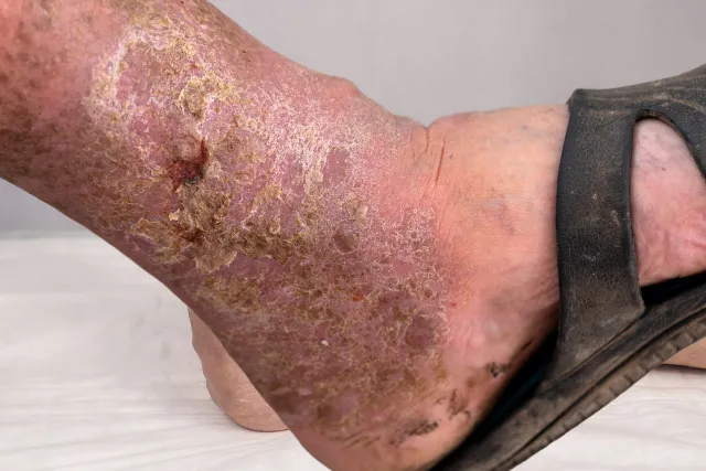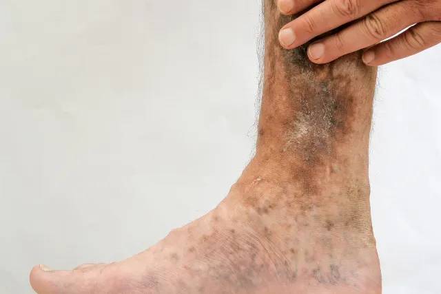 Other symptoms of CVI include thickening of the skin and tissue fibrosis. In advanced cases, individuals may develop lipodermatosclerosis, which gives a ‘woody’ appearance and texture to the leg.