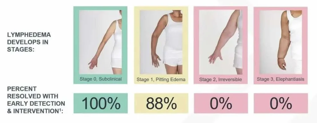 The diagram below is a snapshot taken from a webinar (by impedimed) called ‘the PREVENT Trial’,  These were their success rates based on the stage of lymphoedema for those in the trial. The results absolutely highlight early intervention giving the best possible outcomes.