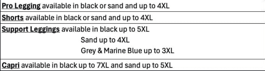 Available in black and sand sizes from S – 4XL