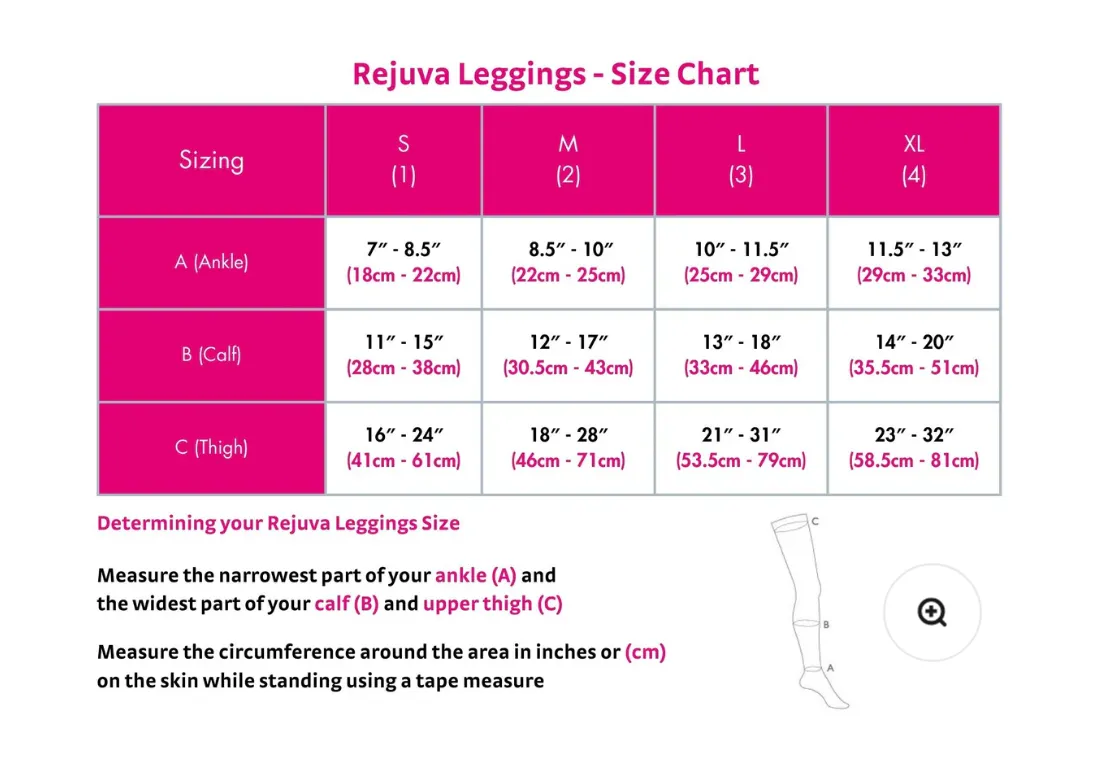 #When taking your measurements, (sizing chart in photo gallery) You want A, B & C to be in the same or similar position within the range given for each. e.g. all in middle of the cm ranges (you have a perfect fit). If your calf measurement is at the high end of the range and your ankles at the the low end of the range, they could potentially cause swelling in the lower legs.